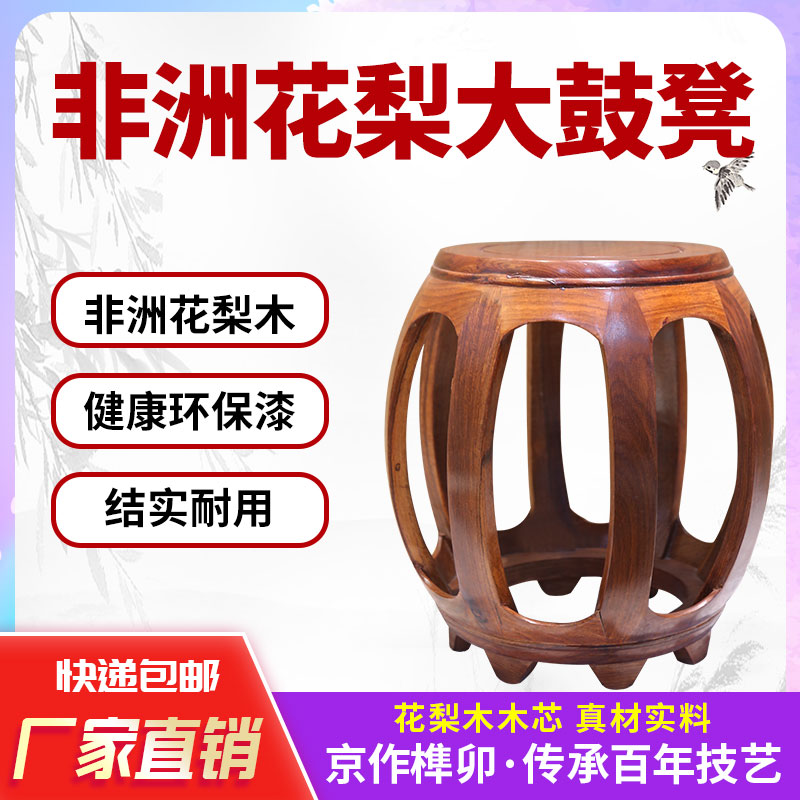 红木鼓凳实木中式仿古圆凳非洲花梨木换鞋凳整装红木家具凳子
